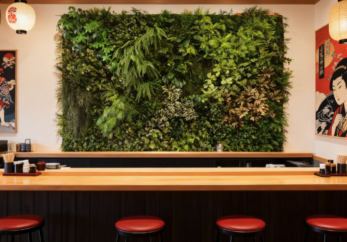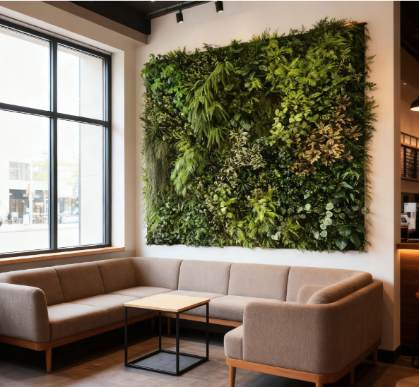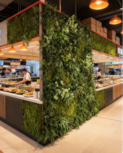 What makes our greenery wall decor truly distinctive? It is tailor-made for the practical operational scenarios of restaurants:odor-free,eliminating the interference between damp plant smells and the aroma of gourmet food, and incredibly low-maintenance. No frequent pruning or watering is needed — our carefully curated mix of low-upkeep artificial plants, available in custom sizes to fit any space, thrives with minimal care. This lets your staff focus on serving guests rather than spending time maintaining decorations. Even a single thoughtfully designed greenery wall can infuse the space with vitality, warmth, and alluring exotic intrigue.